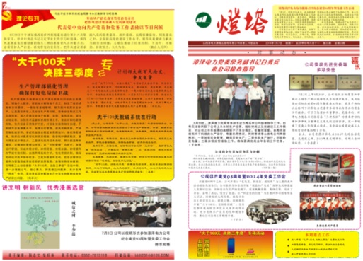 2014年6月26日,國(guó)能中電塔山維護(hù)項(xiàng)目部參加山西漳電大唐塔山發(fā)電公司召開(kāi)的“大干100天、決勝三季度”專(zhuān)項(xiàng)活動(dòng)動(dòng)員會(huì),并與業(yè)主簽訂了安全生產(chǎn)責(zé)任狀。項(xiàng)目部為此制定了各項(xiàng)組織、技術(shù)、安全措施。同時(shí),項(xiàng)目部專(zhuān)題稿件“大干100天,脫硫在行動(dòng)”榮登于塔山發(fā)電公司《塔山燈塔報(bào)》第23期一、二版。