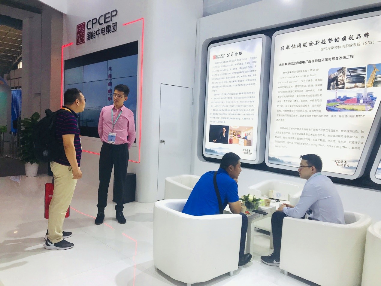 國能中電作為節(jié)能環(huán)保行業(yè)的領(lǐng)軍企業(yè),多年來致力于工業(yè)煙氣治理、超凈火力發(fā)電、生物質(zhì)能源利用、綠色金融服務(wù)和環(huán)保新材料研發(fā)等領(lǐng)域。在此次展會中,國能中電集中、全面、生動地展示了公司煙氣污染物協(xié)同脫除系統(tǒng)(SRS)—環(huán)保島、炭基催化劑干法煙氣多污染物一體化脫除技術(shù)、余熱閃蒸自結(jié)晶“3C-MED”脫硫廢水零排放技術(shù)、激光熔覆技術(shù)、環(huán)保浸金劑技術(shù)等多項優(yōu)勢核心技術(shù),以及環(huán)保裝置第三方運維、環(huán)保核心設(shè)備生產(chǎn)等專業(yè)服務(wù)。
