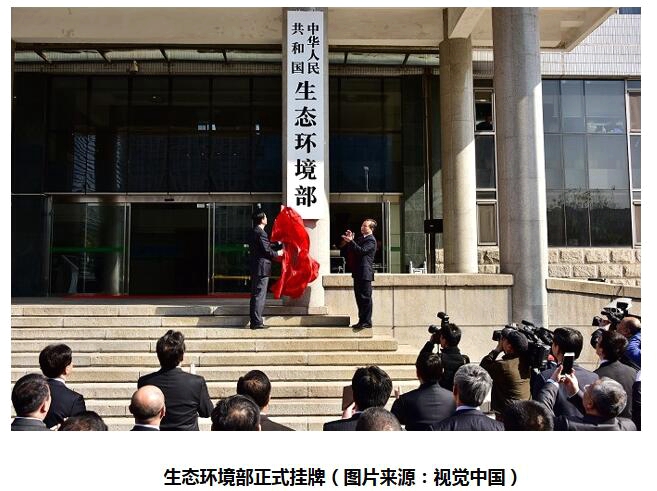 4月16日上午,新組建的生態(tài)環(huán)境部正式掛牌。李干杰任黨組書(shū)記、部長(zhǎng)。新部門(mén)生態(tài)環(huán)境監(jiān)管職能強(qiáng)化,監(jiān)管領(lǐng)域拓展,對(duì)建設(shè)美麗中國(guó)具有十分重要的意義。