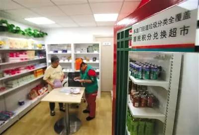 5月28日,東直門(mén)街道垃圾分類積分兌換超市里,一位居民正在使用積分兌換物品。