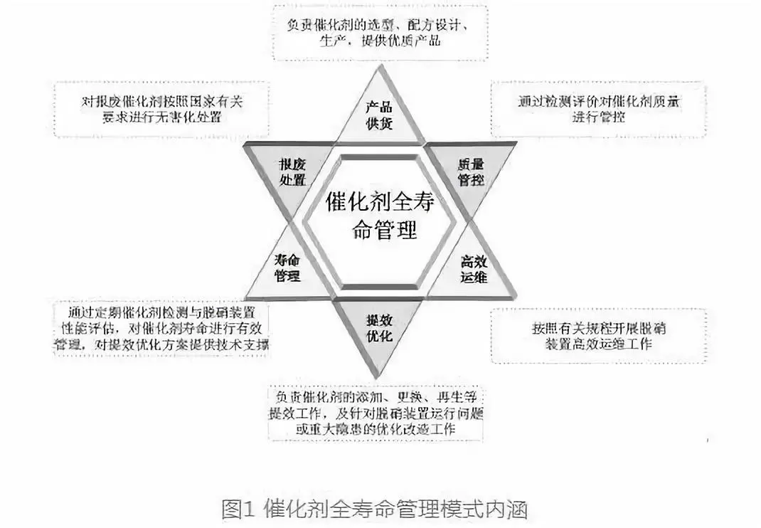 早期管理模式—主要應對環(huán)保達標排放以及技改工程限期治理要求,在早期大規(guī)模工程改造以及催化劑市場供不應求的形勢下,僅僅是單純粗放式的工程階段設(shè)備“買+ 裝”模式,缺乏對催化劑產(chǎn)品質(zhì)量的管控?,F(xiàn)行管理模式—鑒于早期管理模式在工程投運后產(chǎn)生的一系列問題,近年來發(fā)電企業(yè)對催化劑質(zhì)量加強了管控,初步形成了“買+ 檢+ 裝+ 不定期檢”的模式,但由于缺乏連續(xù)性與整體性考慮,未能充分調(diào)動各方單位的參與度,責任單位往往在于發(fā)電企業(yè),相關(guān)工作開展較為被動,難以實現(xiàn)對催化劑全壽命周期的采購質(zhì)量、運行壽命以及脫硝運維成本的有效管控。