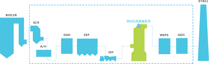 煙氣污染物協(xié)同脫除技術(shù)系統(tǒng)(SRS)是指在一設(shè)備內(nèi)同時脫除兩種及以上煙氣污染物,或者為下一流程設(shè)備脫除污染物創(chuàng)造有利條件,實現(xiàn)煙氣污染物在多個設(shè)備中高效聯(lián)合脫除,同時實現(xiàn)良好的節(jié)能效果的技術(shù)。國能中電系統(tǒng)地研究脫硝、除塵和脫硫之間的協(xié)同關(guān)系,充分考慮各類污染物的綜合脫除效果,通過系統(tǒng)性的設(shè)計,達(dá)到多種污染物的協(xié)同脫除的目的,實現(xiàn)最優(yōu)的排放指標(biāo)、最好節(jié)能效果和環(huán)保裝置的運行經(jīng)濟性。